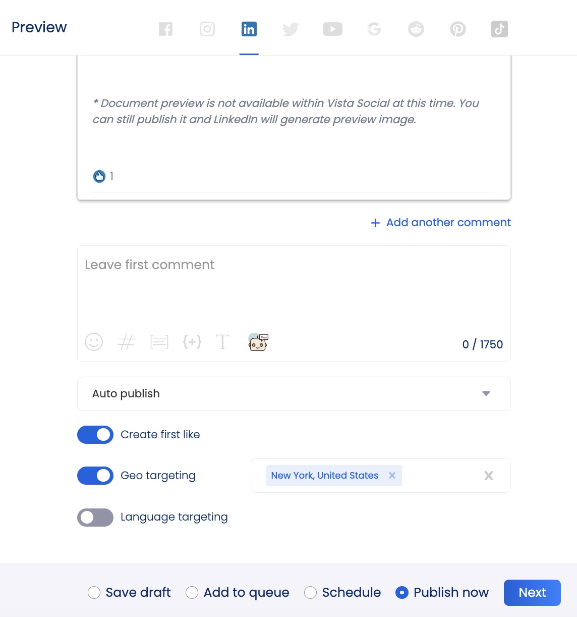 With Vista Social’s organic post targeting feature, make sure your content is hyper-personalized by language or location. This ensures that your content reaches the right audiences at the right time, maximizing its impact.