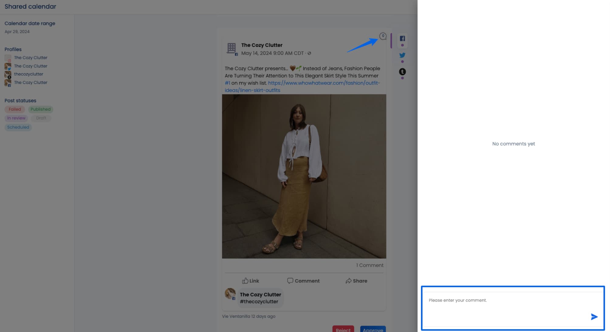 With Vista Social, this is easy. You can create logins for your clients so they’re able to check in on the content calendar and even provide feedback on different posts, all within the same tool.
