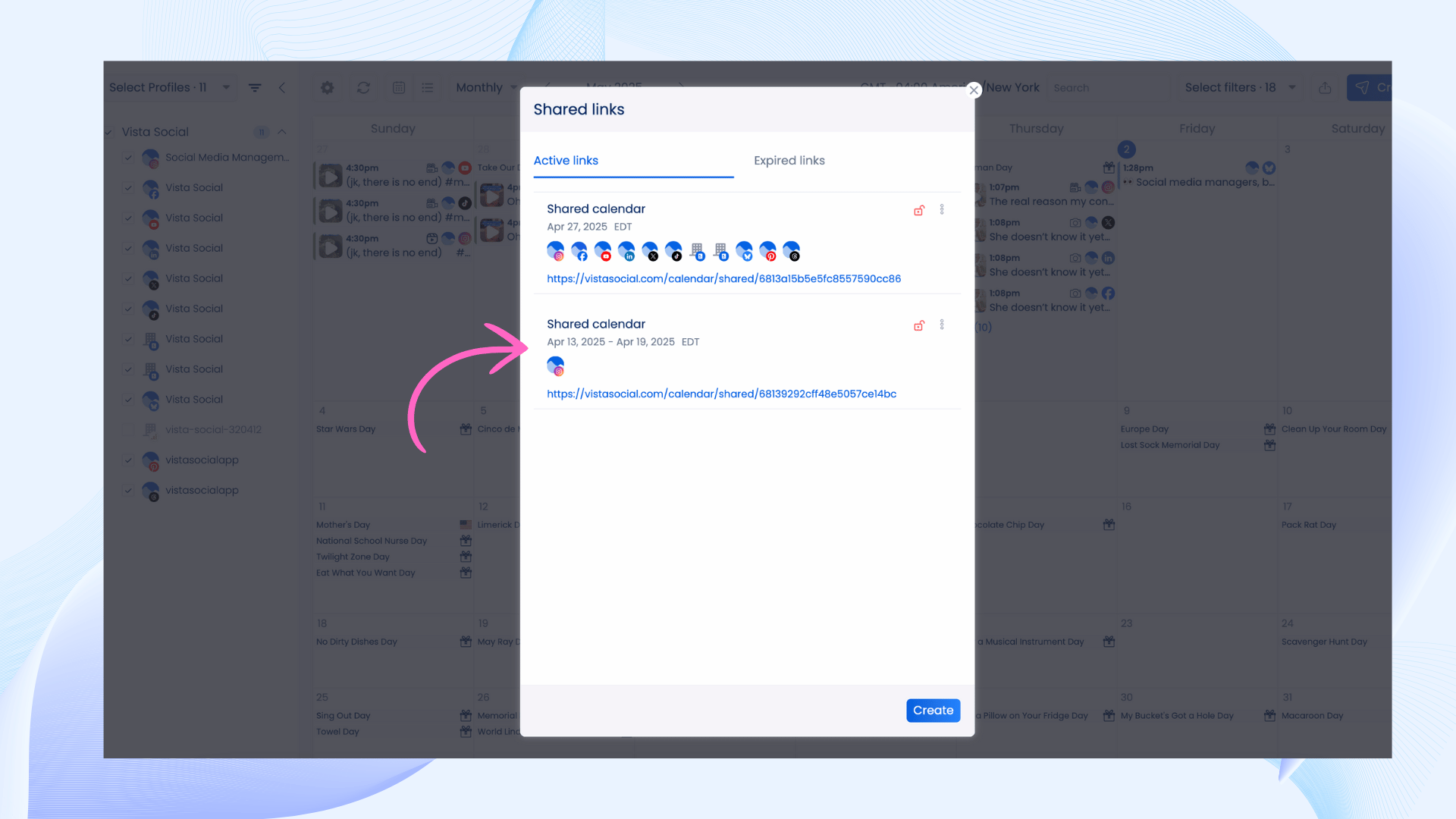 You’ve created your Shared Calendar links—now let’s talk about how to manage them. The good news? It’s just as simple, and everything happens right inside Vista Social.