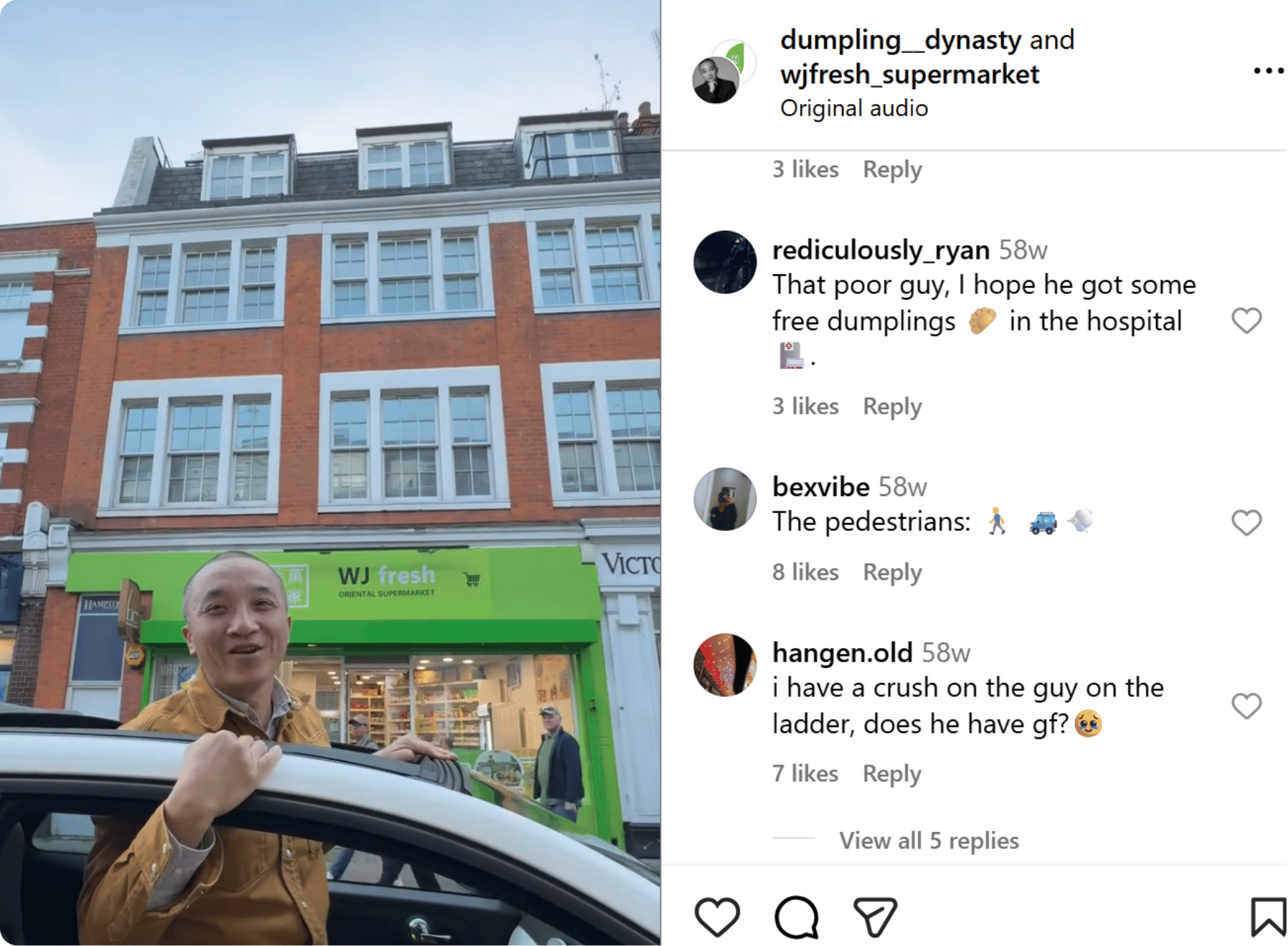 For instance, the Instagram Reel promoting a supermarket below opens with an unrelated stunt.