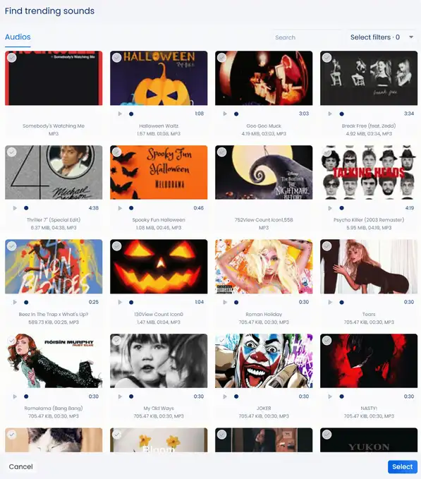 The Audio Insights Hub (formerly the trending audio library) helps you quickly find and add music or sounds that fit your client’s industry and style.