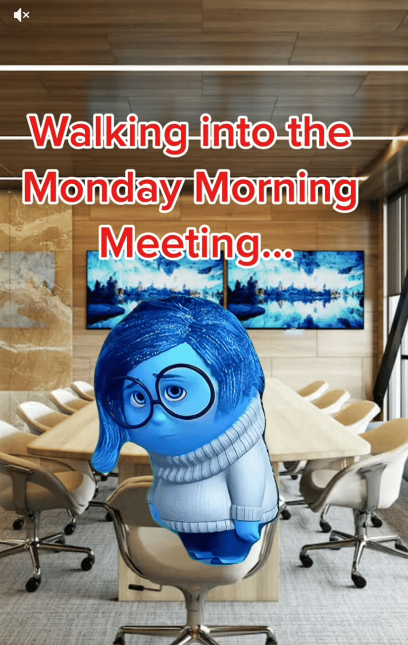 Here’s a TikTok video that shows how people usually feel when walking into a Monday morning meeting.