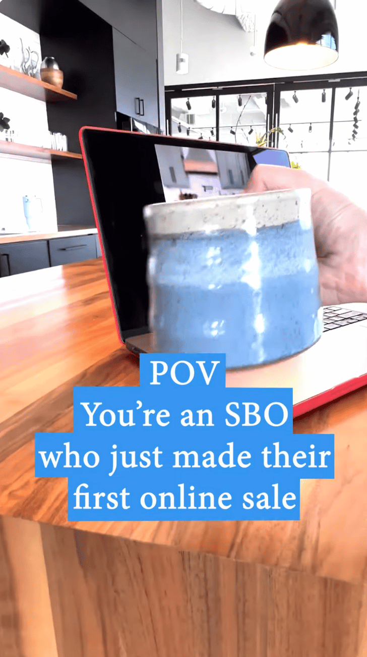 For example, like the YouTube Shorts video below, you can create a short video sharing the POV of a small business owner who just made their first online sale.