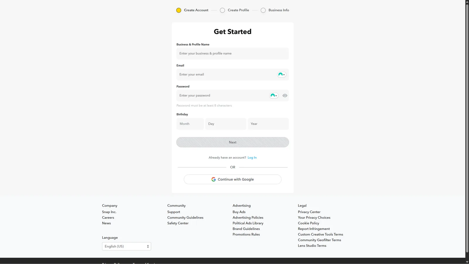 Simply go to the Snapchat for business website and create a new account. You can also login with your existing Snapchat details. Just remember that this is a separate website from the one we use to contact friends and check out content.