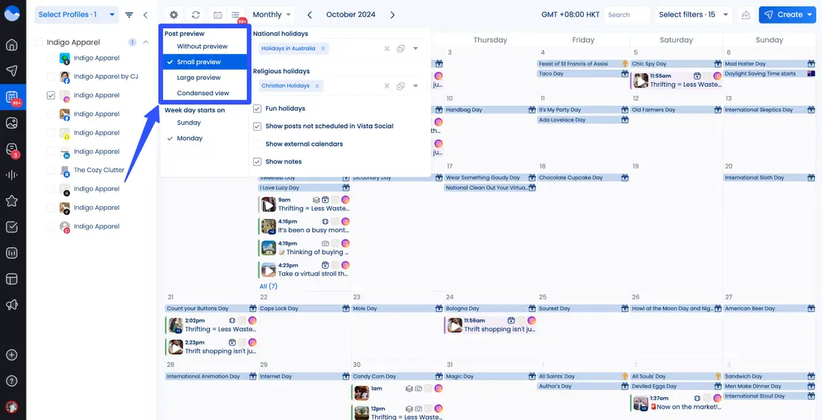- Block out key dates before planning your clients’ social media posts. Think product launches, promotions, holidays, seasonal events, and industry-specific days (like #SocialMediaDay)