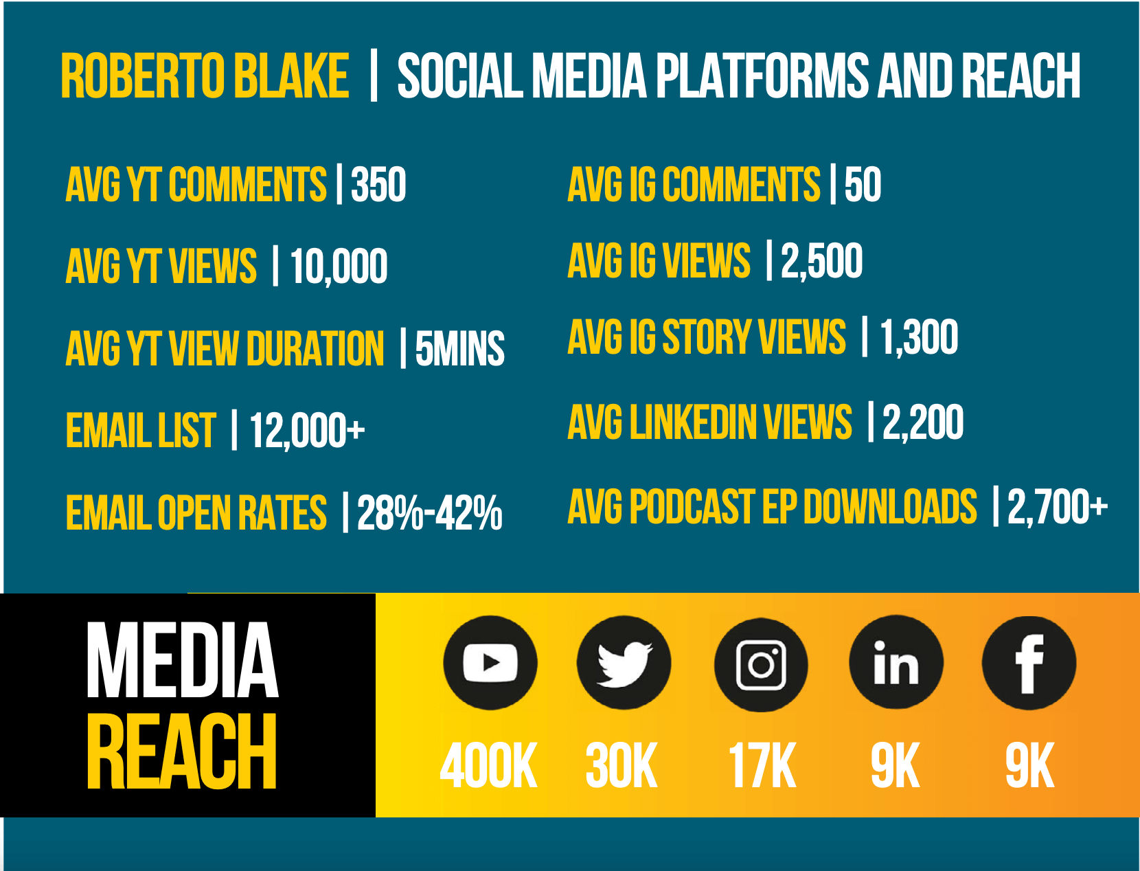 When putting together your social media kit to show off your credibility, be sure it’s loaded with impressive stats about your social media presence.