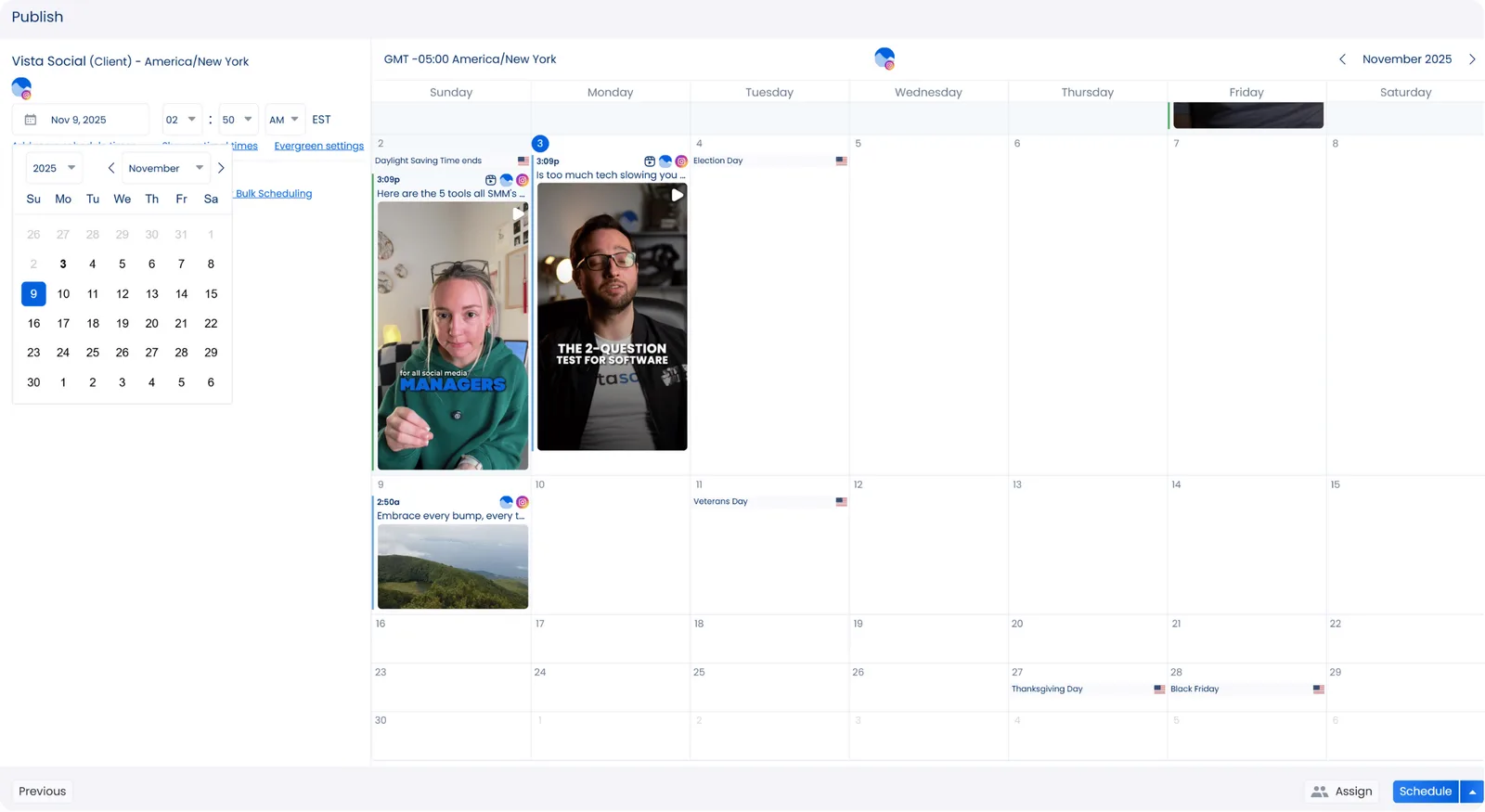 Use the AI Assistant in the Publisher to generate engaging post descriptions and taglines quickly. After setting up your posts, choose a schedule that works best for your clients and let Vista Social handle the publishing automatically. The process feels seamless, freeing up more of your time to focus on building stronger connections through meaningful content.