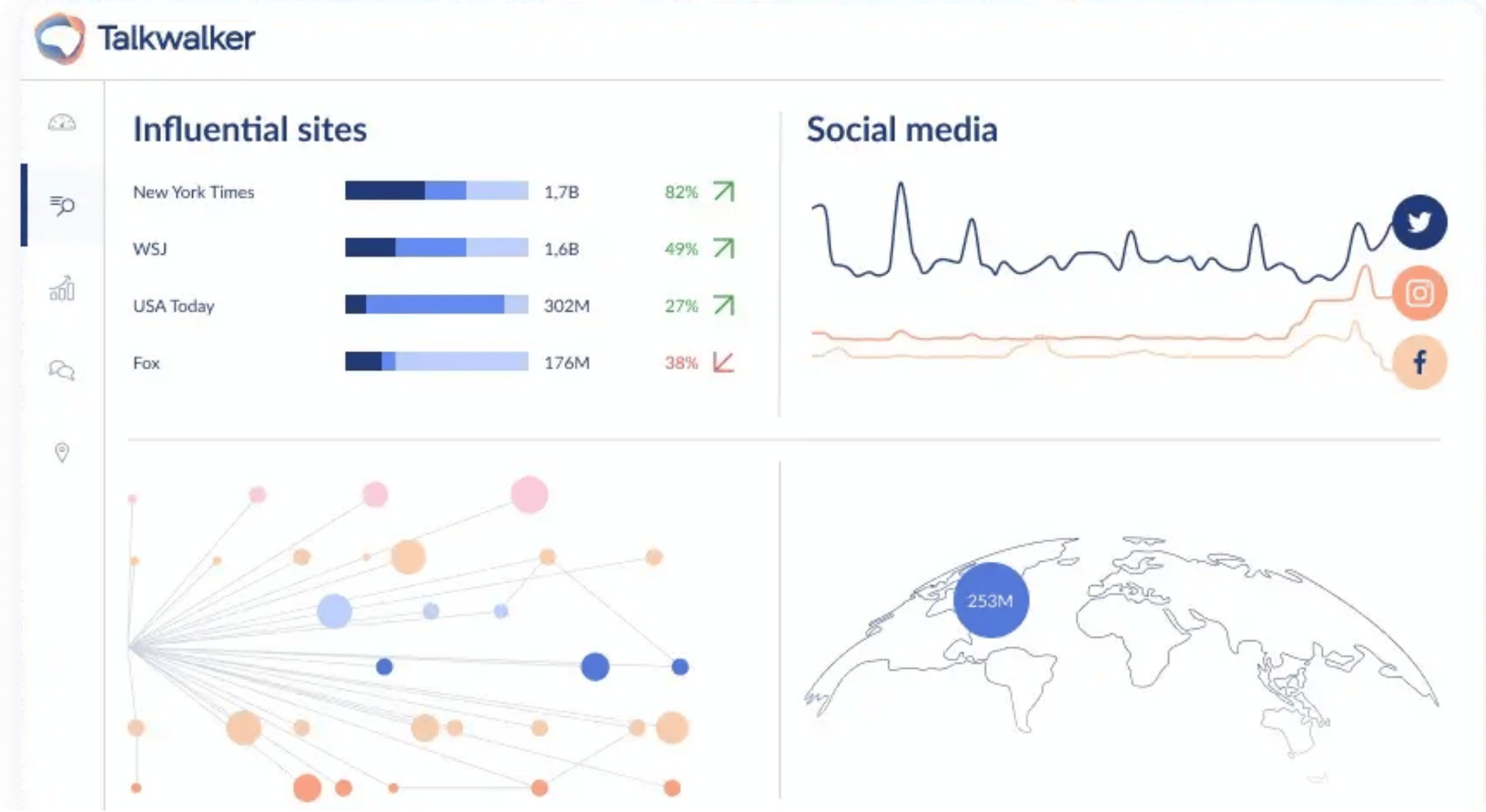 - Real-time tracking of brand mentions and keywords across social networks and news sites