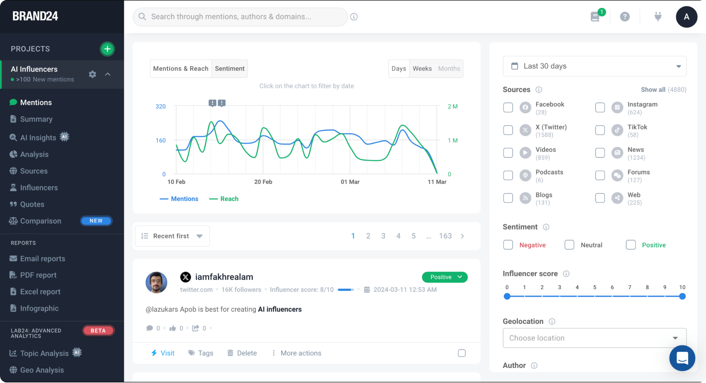 Best for: Agencies and brands seeking an affordable but robust social and web monitoring solution with AI support.