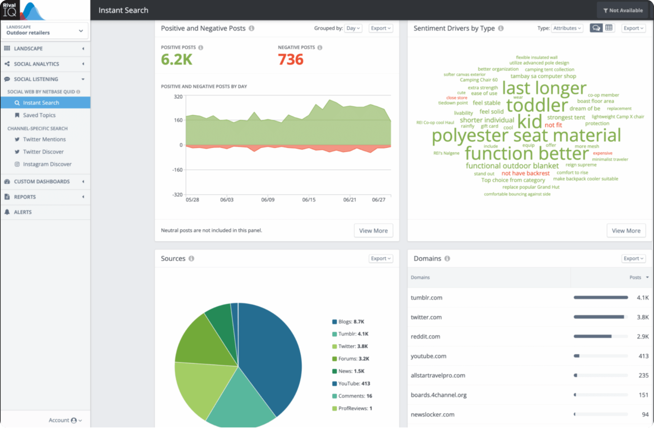 - Trend detection with competitor tracking and sentiment monitoring to give you a full picture of your data for social strategy development