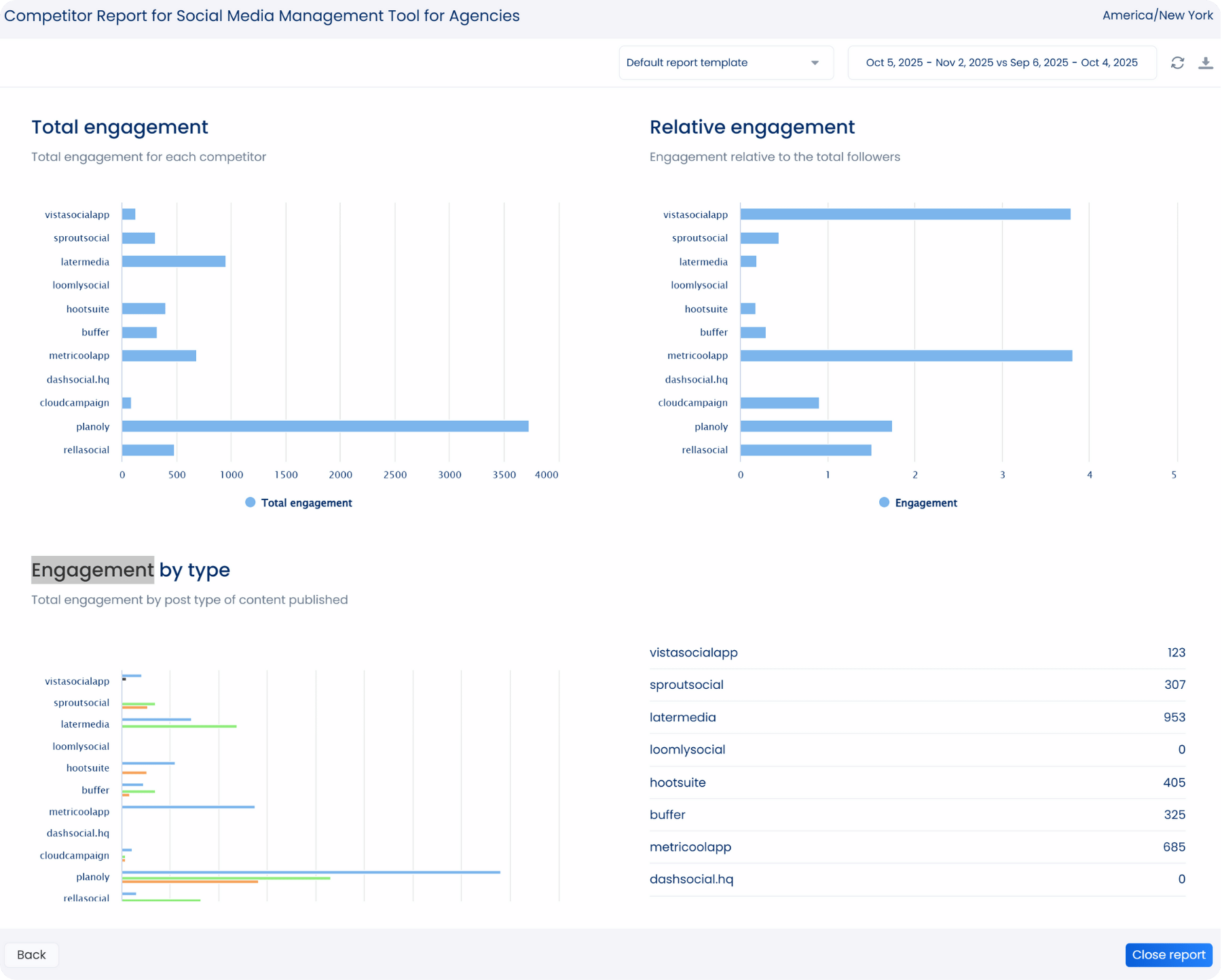 Additionally, engagement metrics and competitor reports break down performance trends, enabling you to assess your performance against your competitors and easily prove ROI.