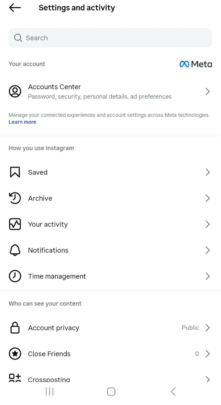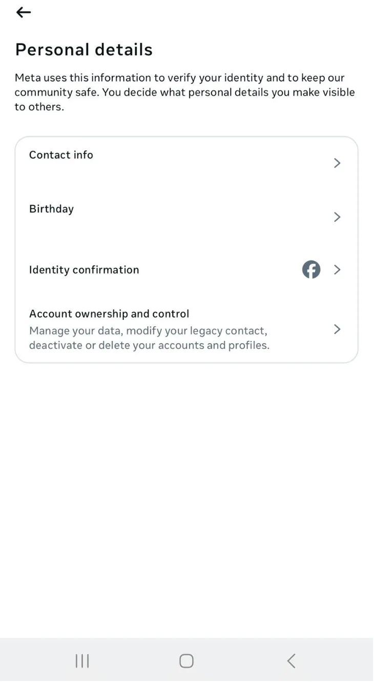 If the deactivate option doesn’t show up, don’t panic. Instagram moved most deactivation tools into Meta’s Accounts Center, so you’ll often find the option hidden there instead of your regular settings. Open Accounts Center, go to your personal details, then tap “Account ownership and control” to access the deactivation tool. Layouts vary across profile types, so the option may appear in a different order. You won’t need to unlink Facebook for it to show up.