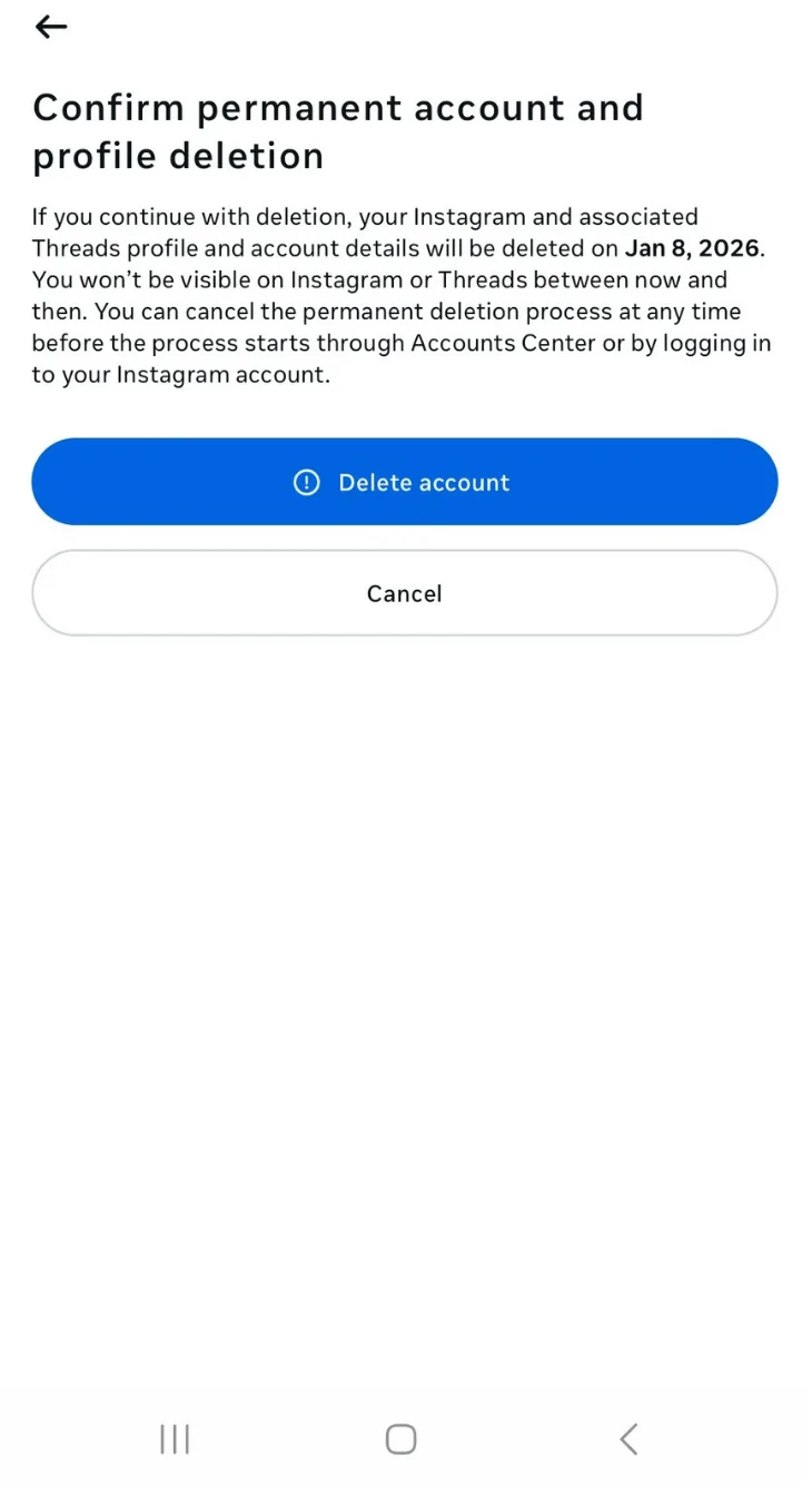 Once the 30-day recovery window passes, Instagram permanently deletes the account. There’s no Instagram appeal form or support option that can restore it after that point. Your photos, files, conversations, Reels, Stories, plus every other detail on your profile will be gone for good.