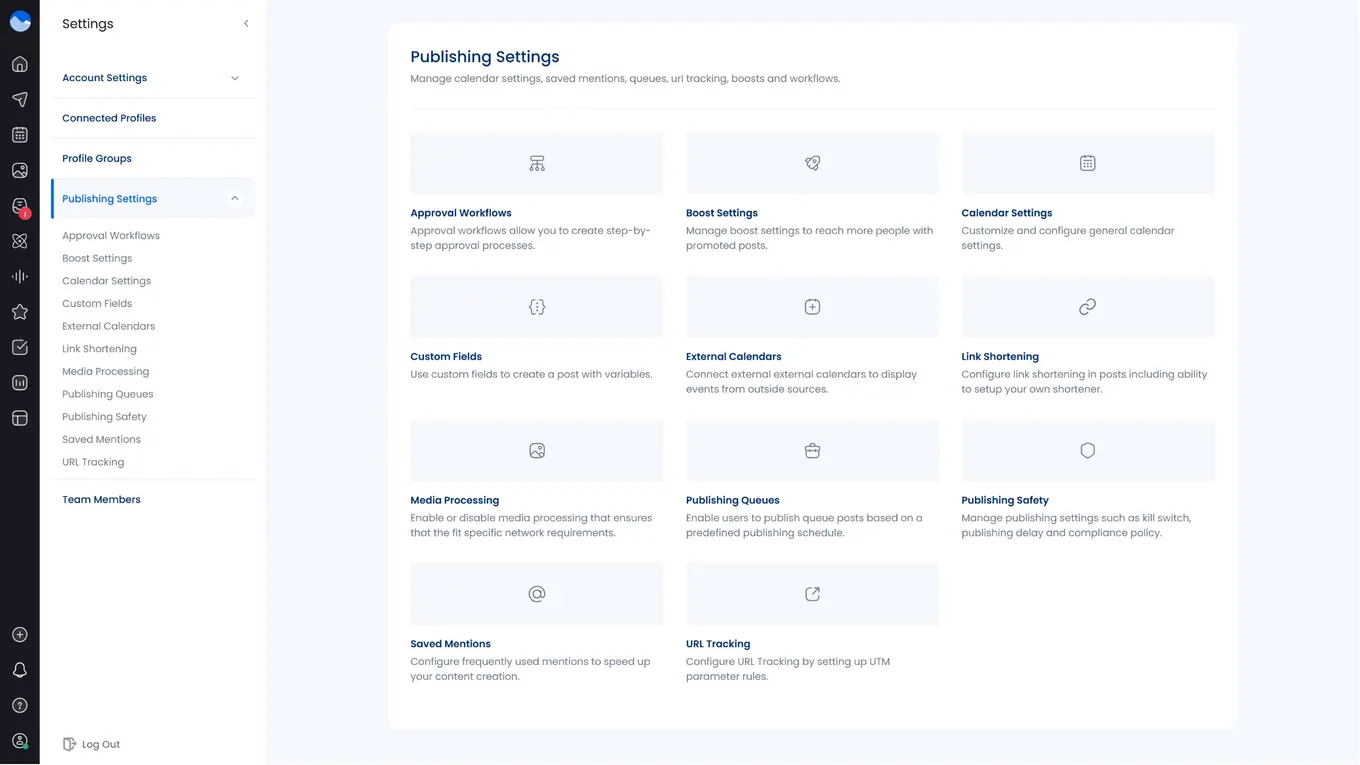 For this, go to ‘Settings’ and select ‘Publishing Settings.’ You’ll be able to configure your automated schedule under “Publishing Queues.”