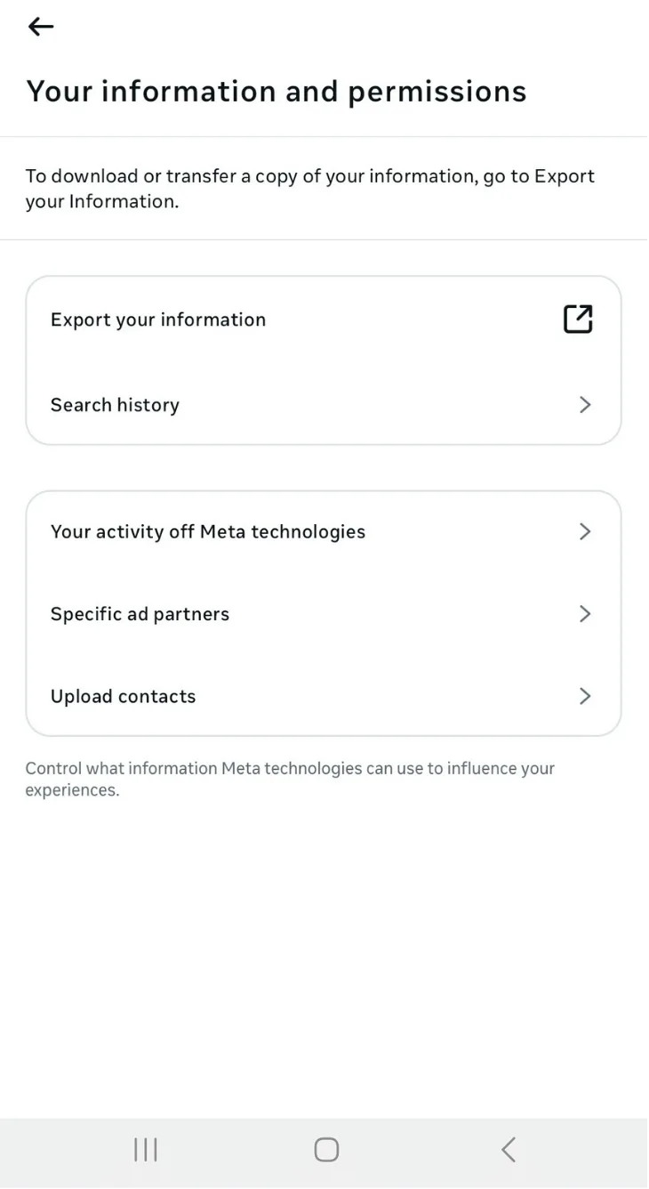 Step 2: On the “Accounts Center” page, tap ‘ Your Information and permissions.’