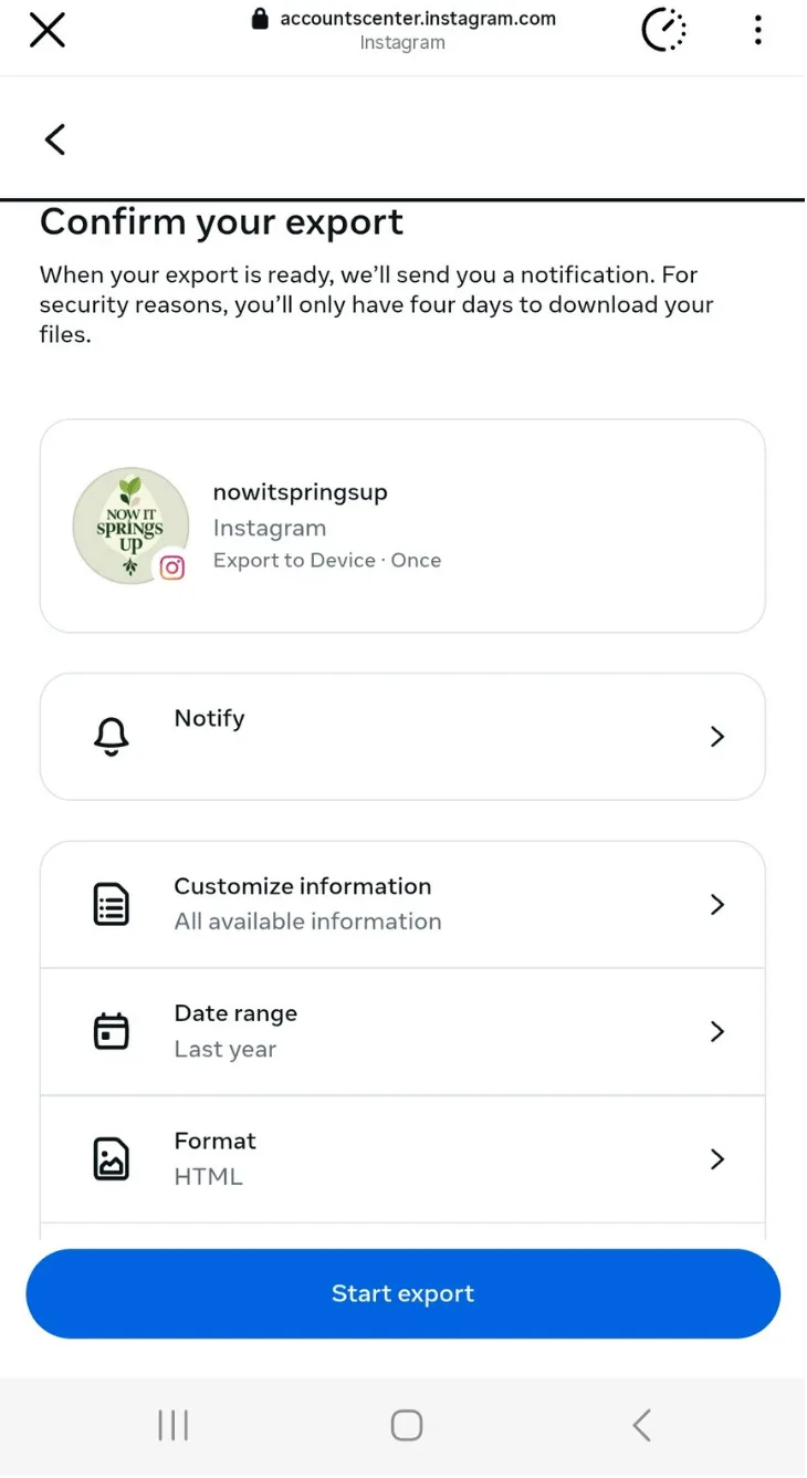Tip: Instagram still uses time-limited download links, and users typically get a four-day window to access their exported data. After that expires, Instagram requires you to submit a new request for a fresh export.