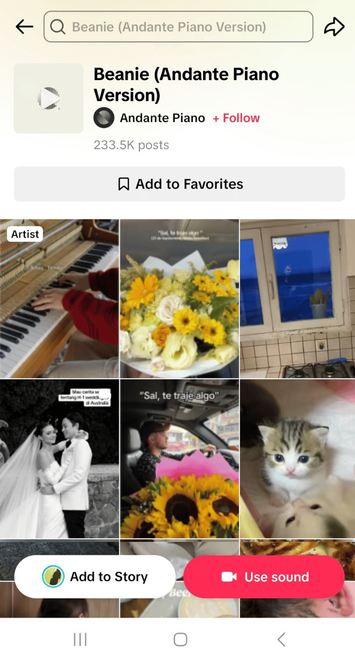 The TikTok algorithm often favors videos that use trending music or sounds, so jump into the trend to get your clients’ content in front of more audiences. Open TikTok and find popular audio by scrolling through posts and finding commonly used songs. Tap on the audio title or icon displayed at each video’s bottom left or bottom right corner.