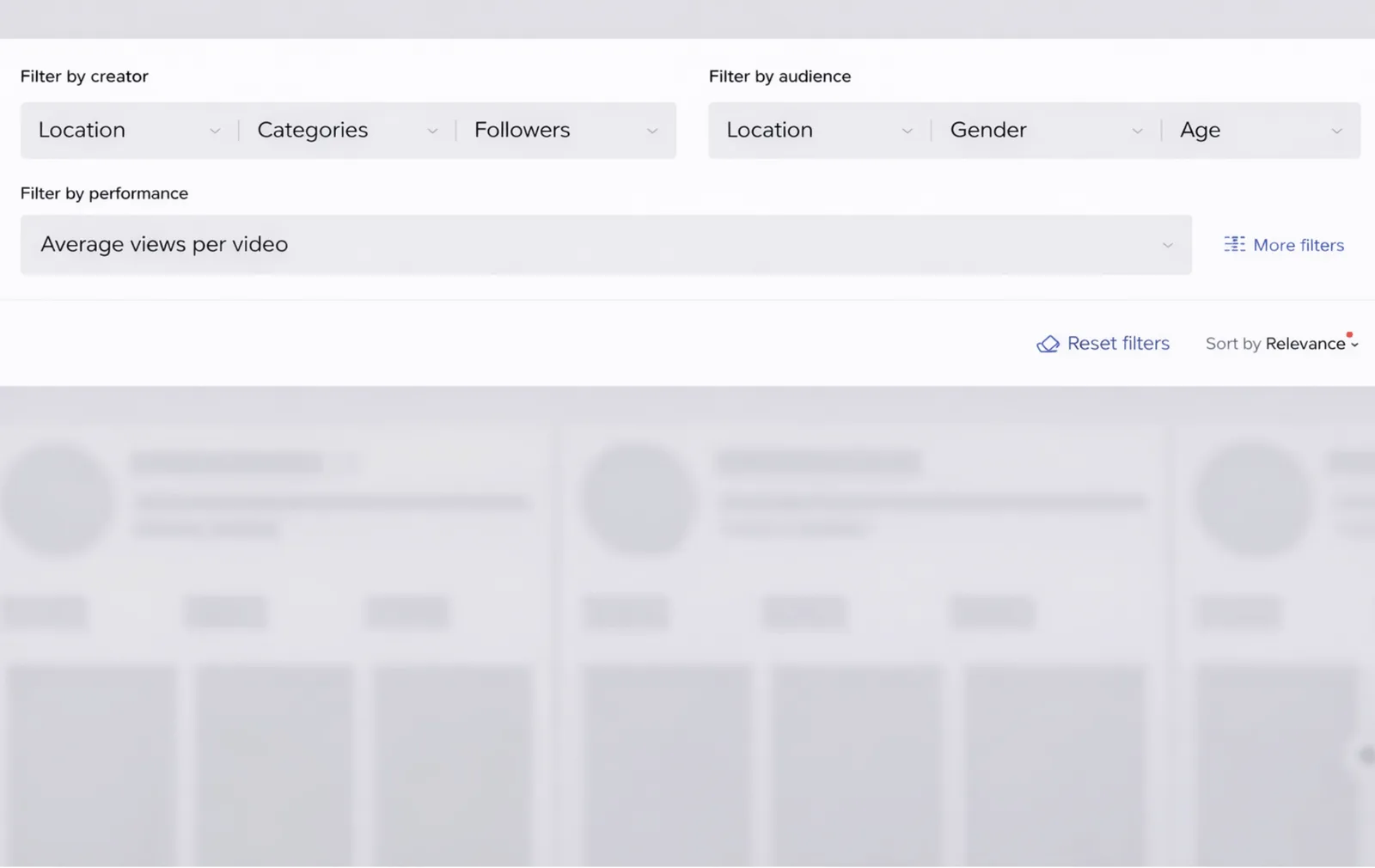 On TikTok Creator Marketplace, use filters to find influencers who are great at generating engagement. Under “Average views per video,” use the slider to specify the range of views you expect from your partner creator.