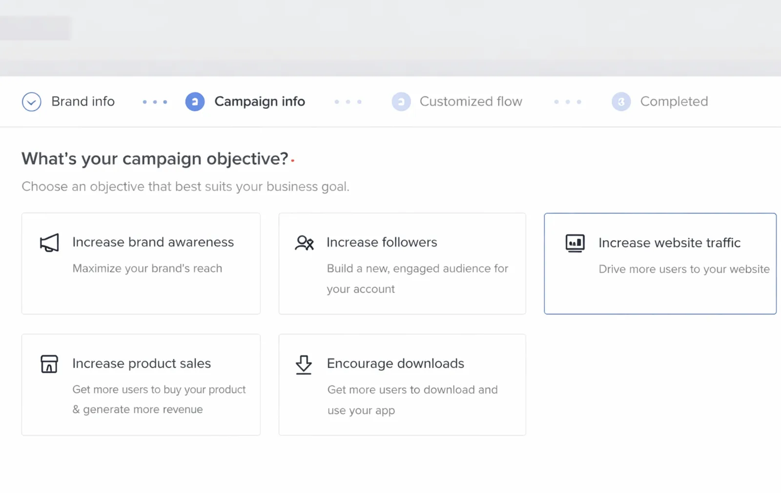 Scroll down to continue creating your TikTok influencer marketing campaign. Under “What’s your campaign objective,” select the main outcome you want from working with TikTok creators. This could focus on increasing brand awareness. It could drive website traffic. It could support product sales. It could help grow your follower count.