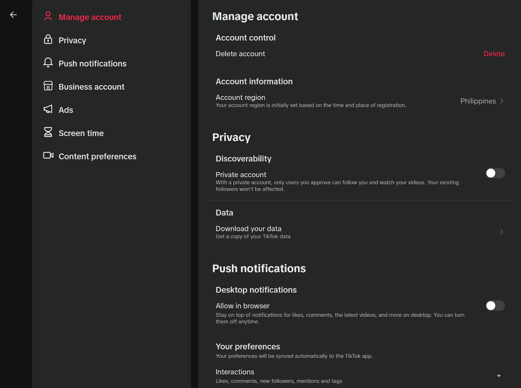 Learn more about requesting your TikTok data here. Remember that the file will only be available for four days for security reasons.