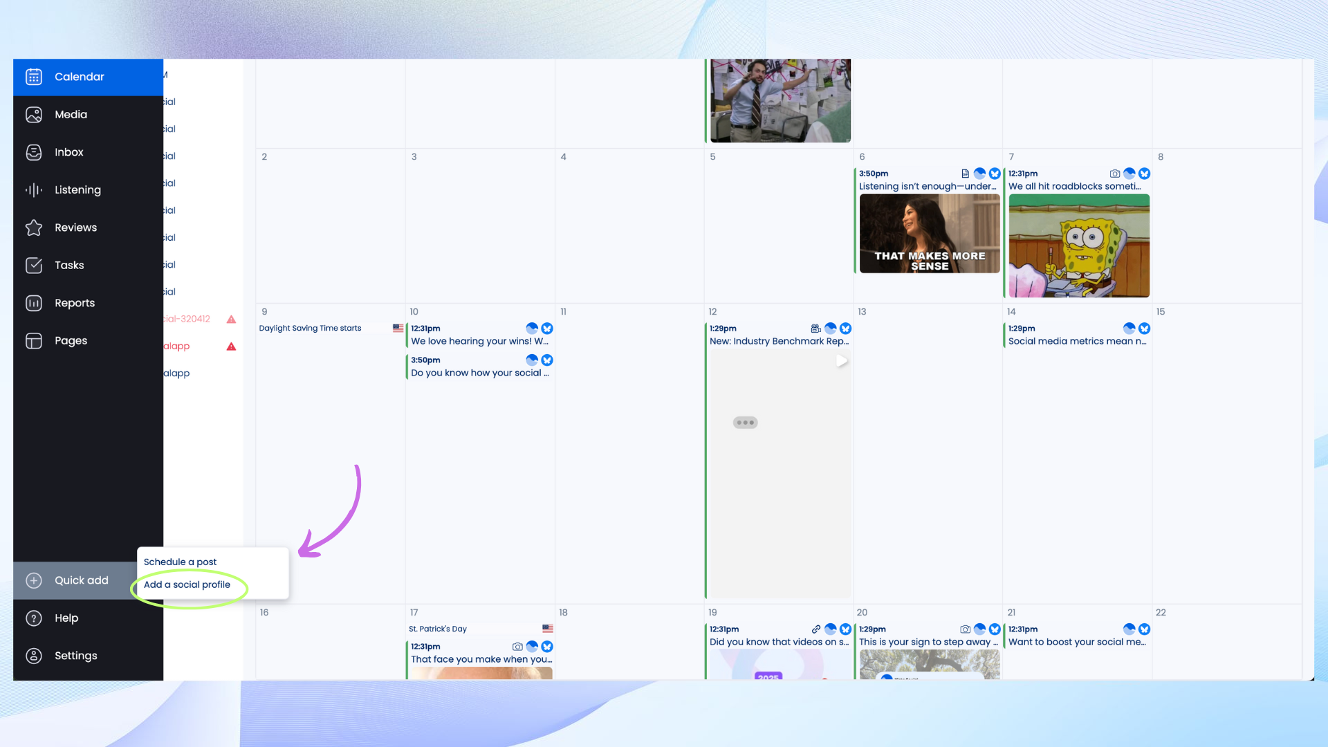1. Go to Quick Add → Add a Social Profile
