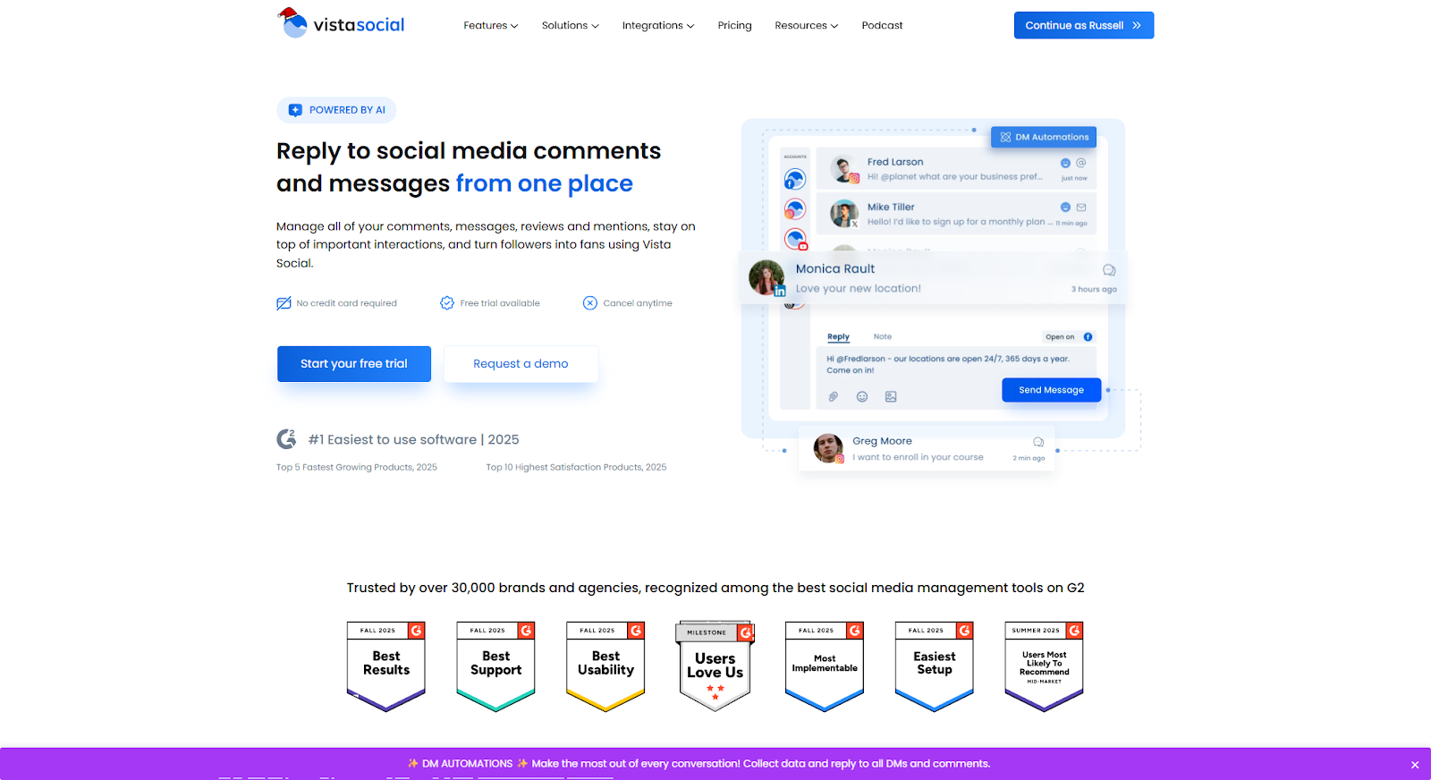 - Vista Social: DM automation, Make/Zapier integrations, cross-platform scheduling