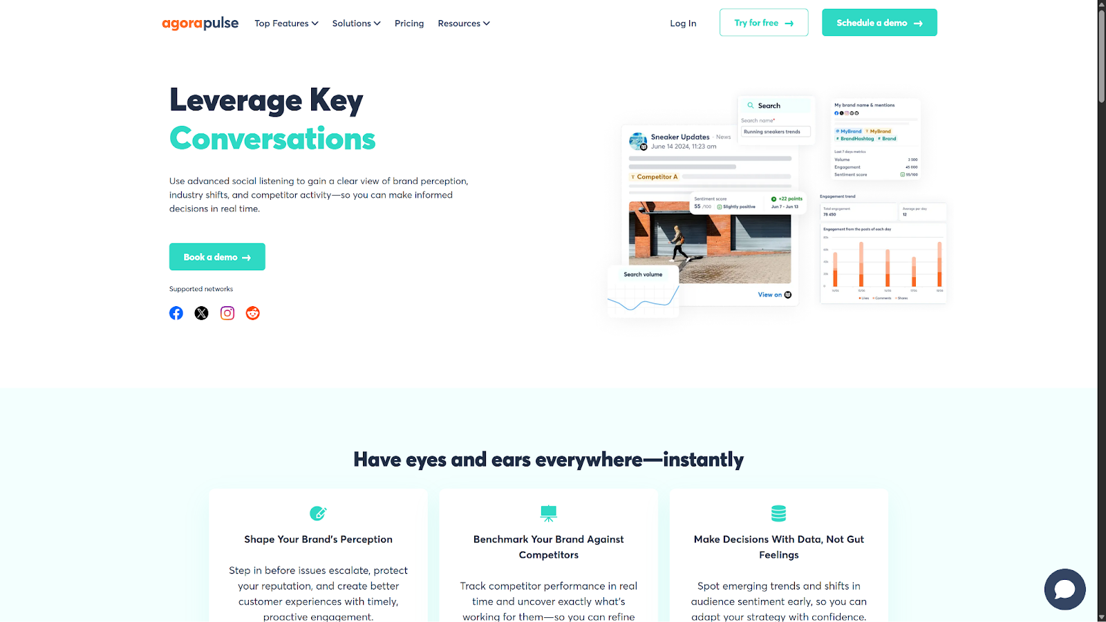 In comparison, Agorapulse offers comprehensive social listening with advanced features including brand sentiment tracking, competitor analysis, and crisis keyword alerts. The platform monitors Facebook, Instagram, X/Twitter, Reddit, plus thousands of news sites and millions of blogs. Additionally, Agorapulse provides up to 24 months of historical data and real-time volume reports to spot trending topics.