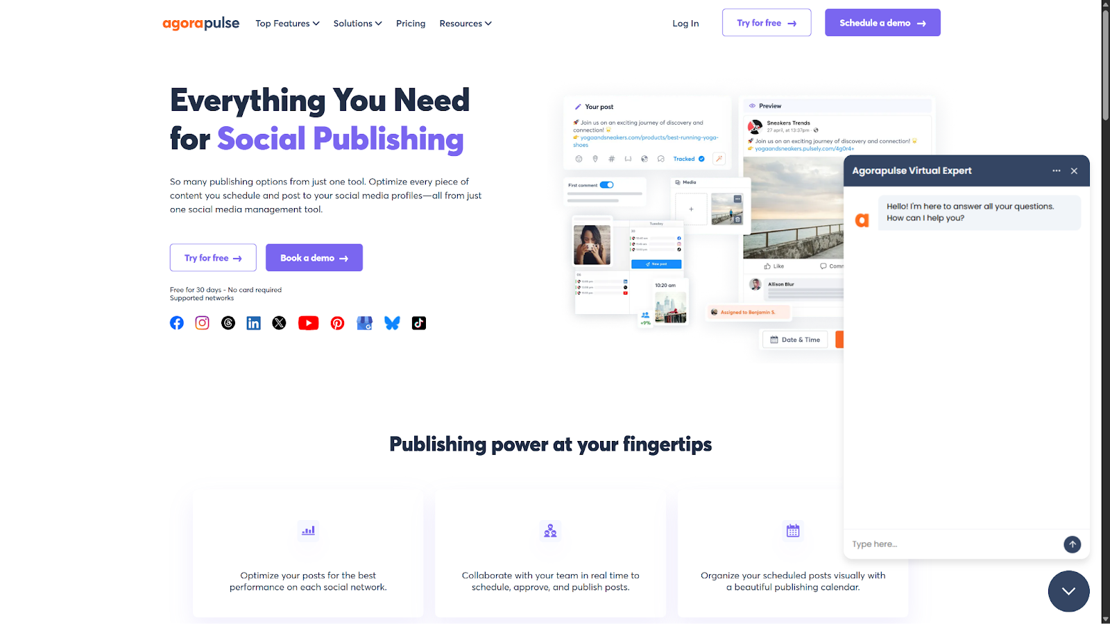 - Agorapulse: Approval workflows, moderation rules, bulk actions, content scheduling