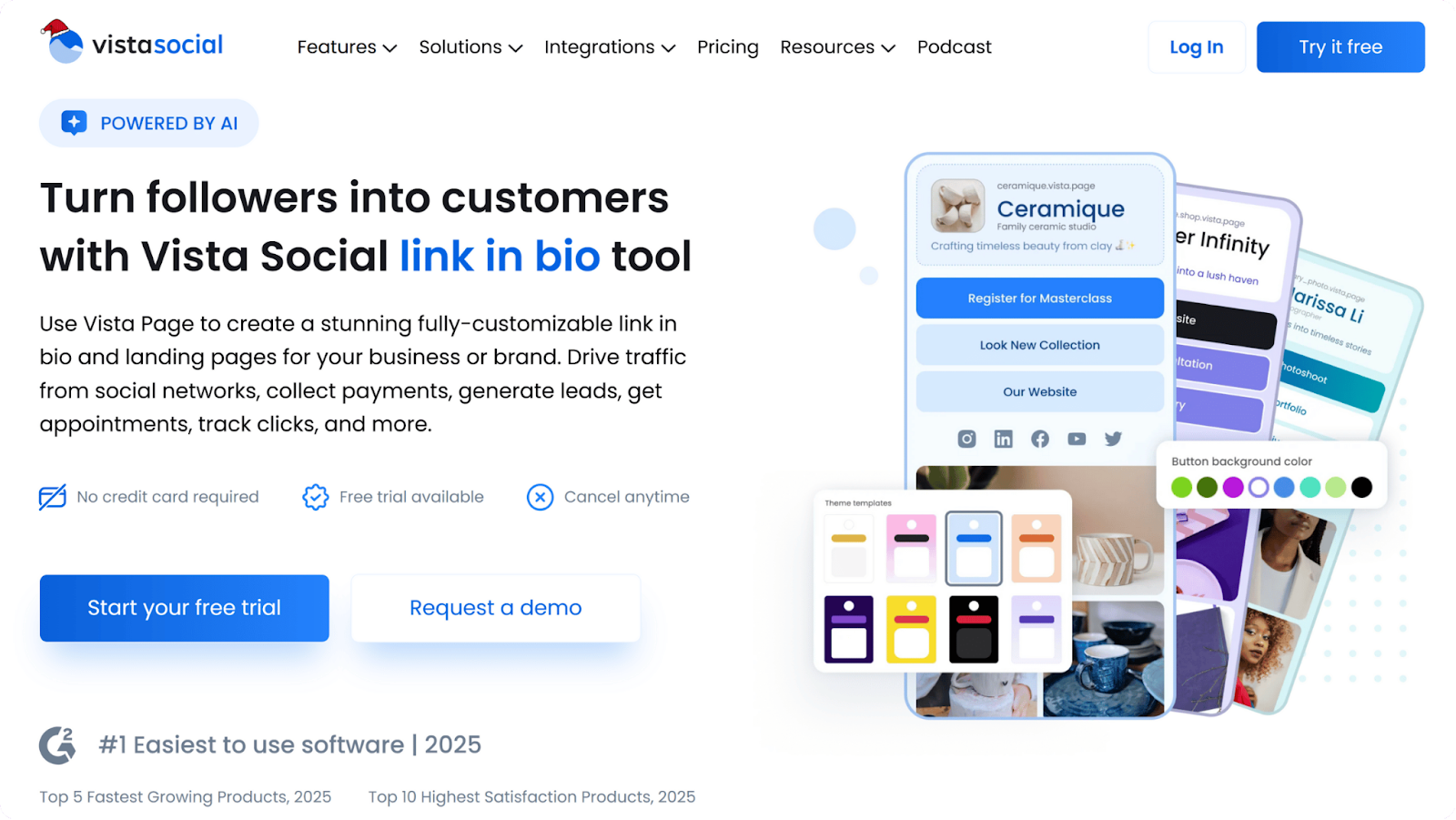 Vista Social offers Vista Page, a fully-customizable bio page that goes beyond just listing links. It allows you to create a central hub for your content, products, and landing pages. You can drive followers directly to your blog posts, product pages, lead forms, or appointments.