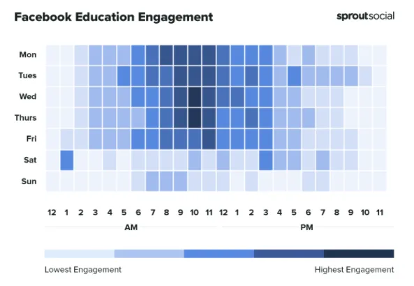 Educational institutions can post on Facebook throughout the day until the evening. According to Sprout Social, schools, colleges, and universities can publish posts at any time, but it is advisable to do it in the morning – around 9 or 10 AM.