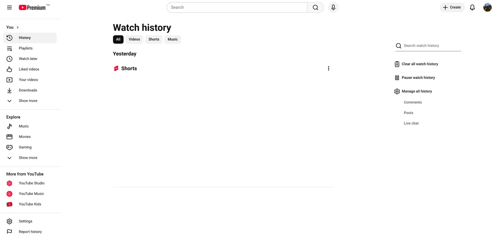 Go to the Manage All History option (Manage All Activity on the mobile app) on your client’s YouTube profile.
