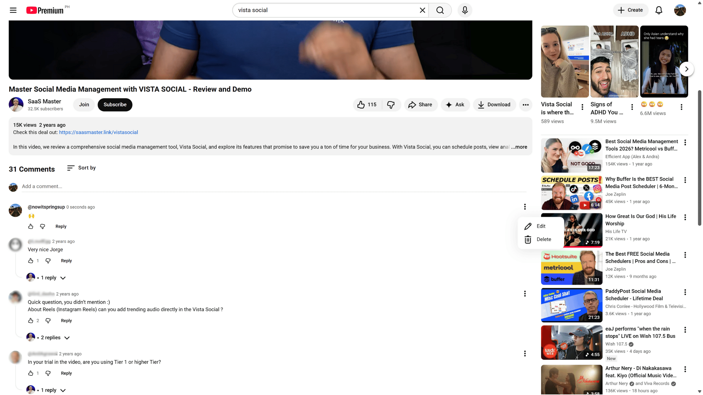 The link takes you to the original video post your client commented on.