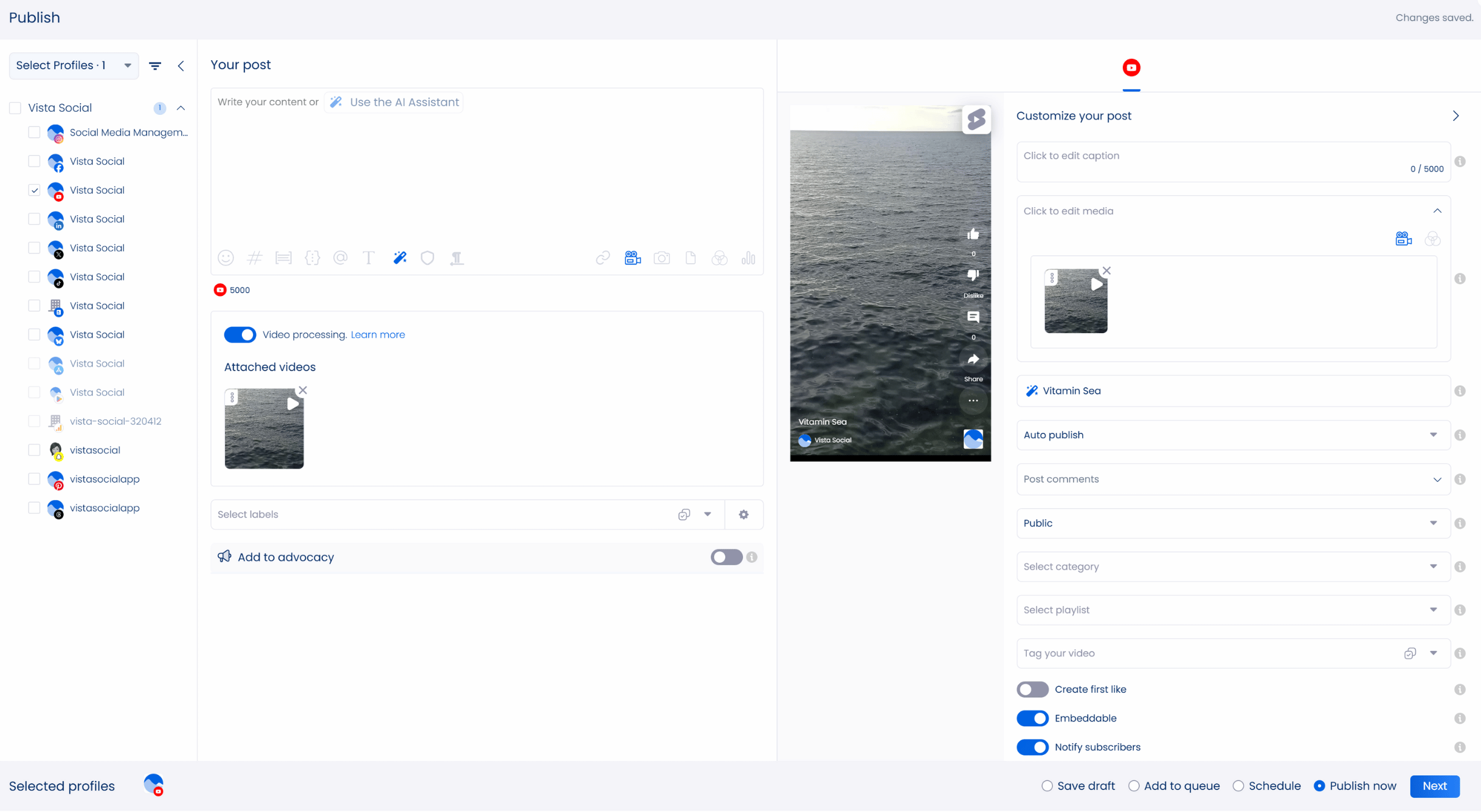 As a busy social media manager, publishing your multiple clients’ YouTube Shorts should be seamless. Enter Vista Social, a modern social media management solution that simplifies and streamlines managing, organizing, and publishing YouTube Shorts and other social media content.
